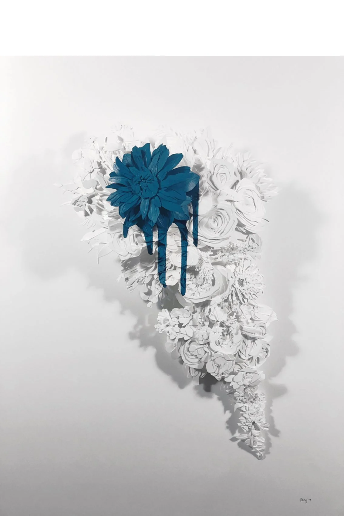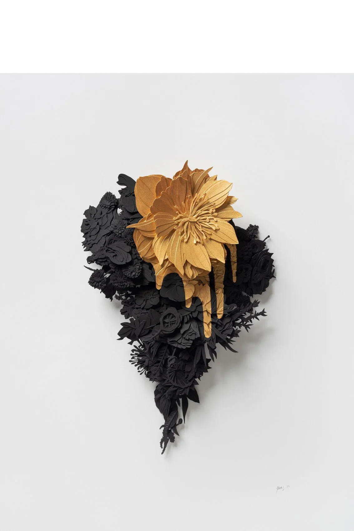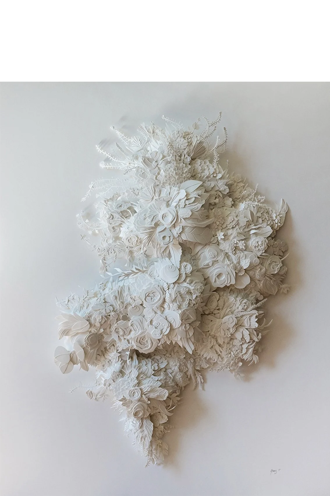 Joey Bates was born and raised in the Pacific Northwest. He initially trained as a painter at Kendall College of Art and Design in the early 2000s. After graduation and some experimentation, Bates found a home in cut paper sculpture. It is his current medium of choice. His works have been exhibited in North America over the past twenty years and have been collected by collectors the world over. He currently resides in the Swedish countryside, just a few hours north of Gothenburg in a cabin on a canal with his dog, Kevin O’Connor.