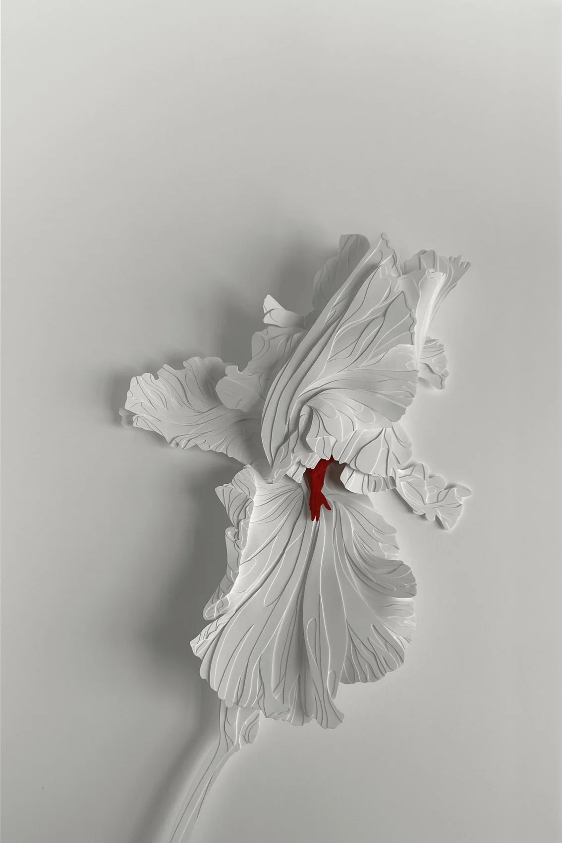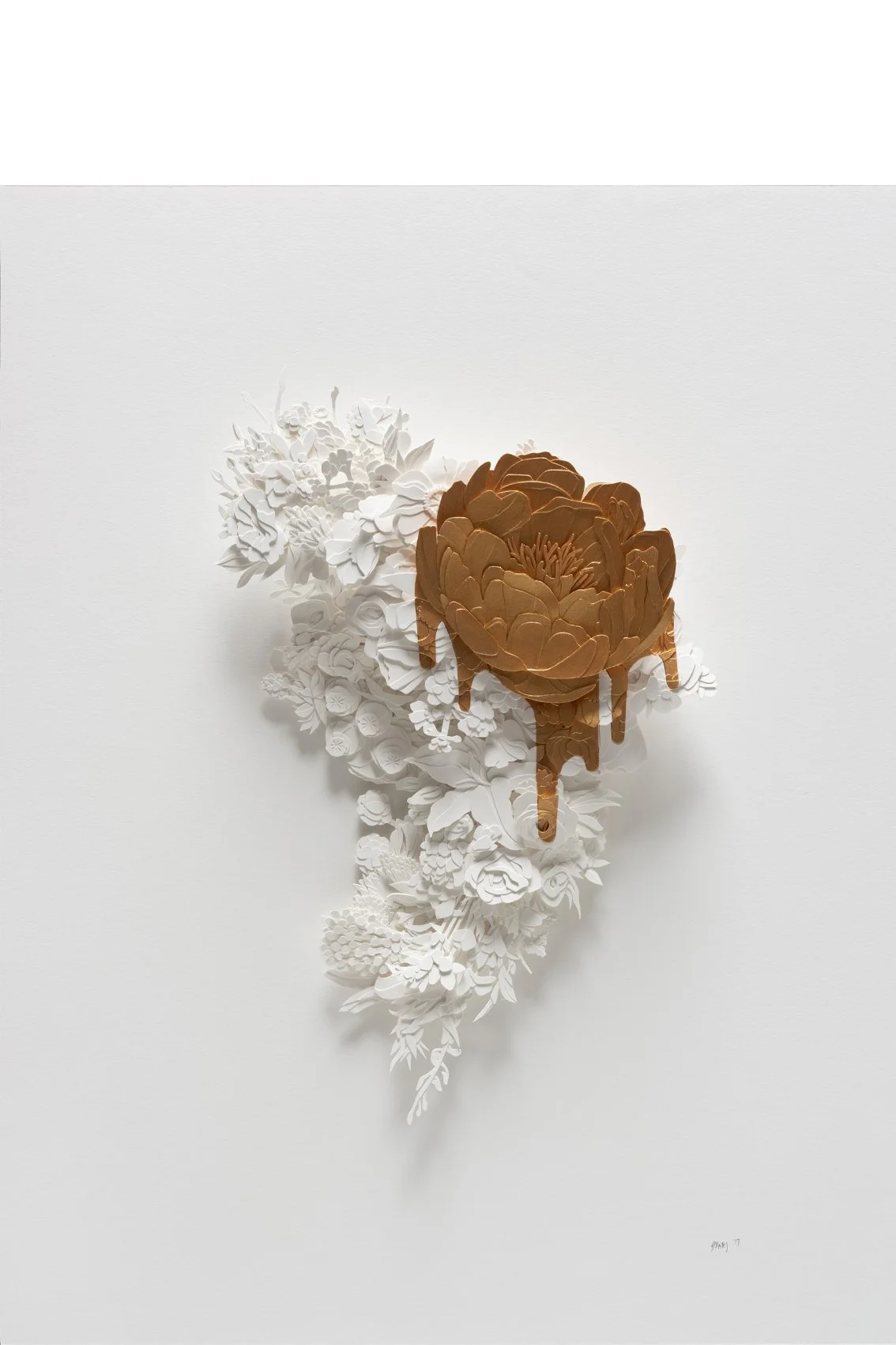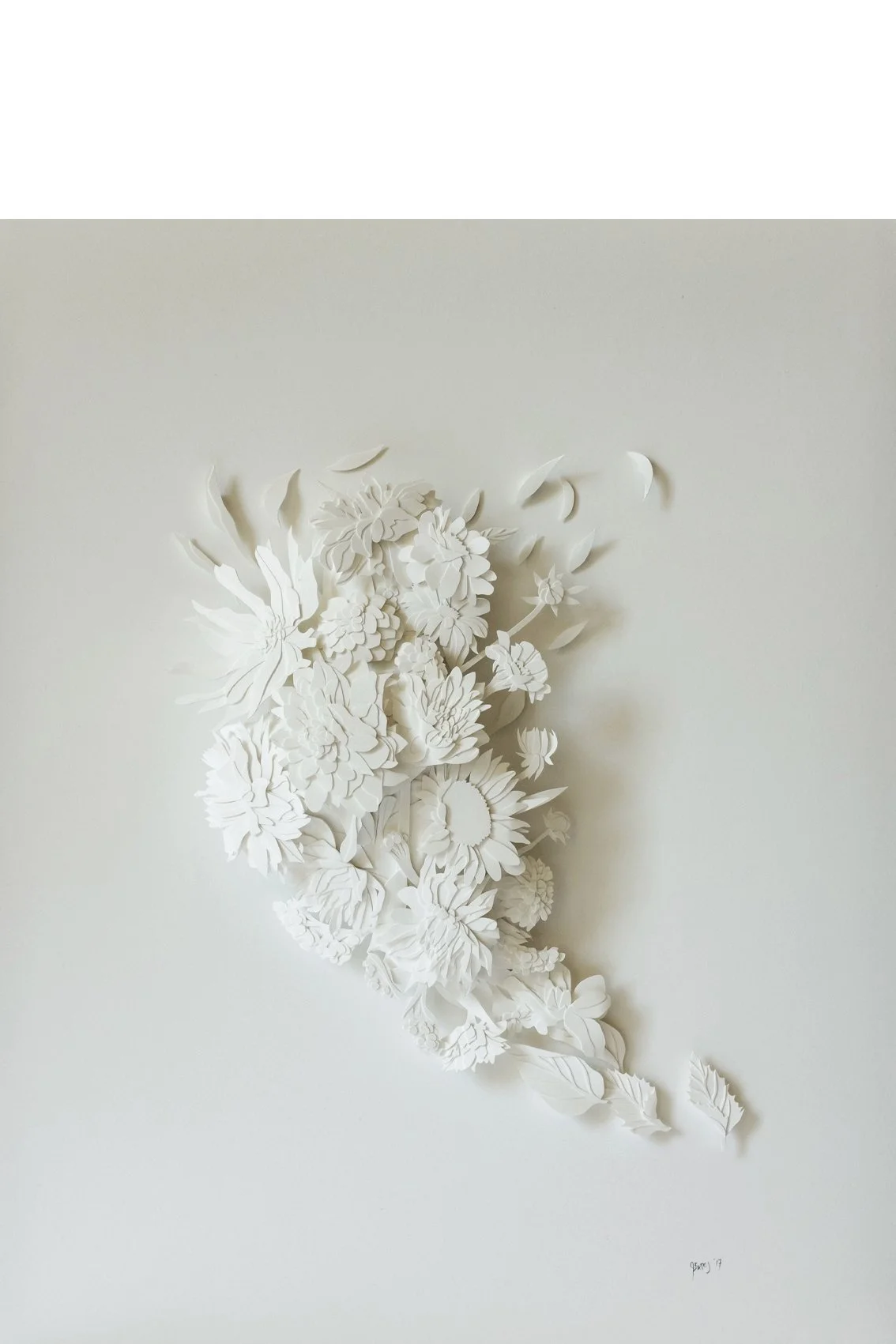 Joey Bates was born and raised in the Pacific Northwest. He initially trained as a painter at Kendall College of Art and Design in the early 2000s. After graduation and some experimentation, Bates found a home in cut paper sculpture. It is his current medium of choice. His works have been exhibited in North America over the past twenty years and have been collected by collectors the world over. He currently resides in the Swedish countryside, just a few hours north of Gothenburg in a cabin on a canal with his dog, Kevin O’Connor.